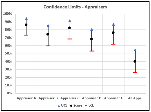 If the variability between the appraisers is small we know that any conclusions we reach when we compare one product to another are reliable. However, if the variability between our appraisers increases, we may have to conclude that we are not able to reliably distinguish between different products that are reasonably similar to each other. For instance, we may not be able to statistically distinguish between one of our products and a competitor’s product. So we may make business decisions based on unreliable data.