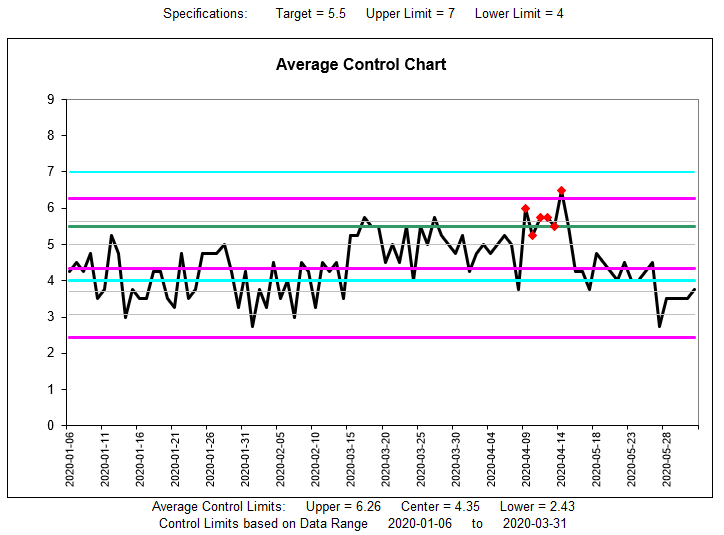 The goal of control charting is to find individual or groups of data that cannot be explained as the result of normal process variation. There are many criteria that meet this definition of lack of process control: